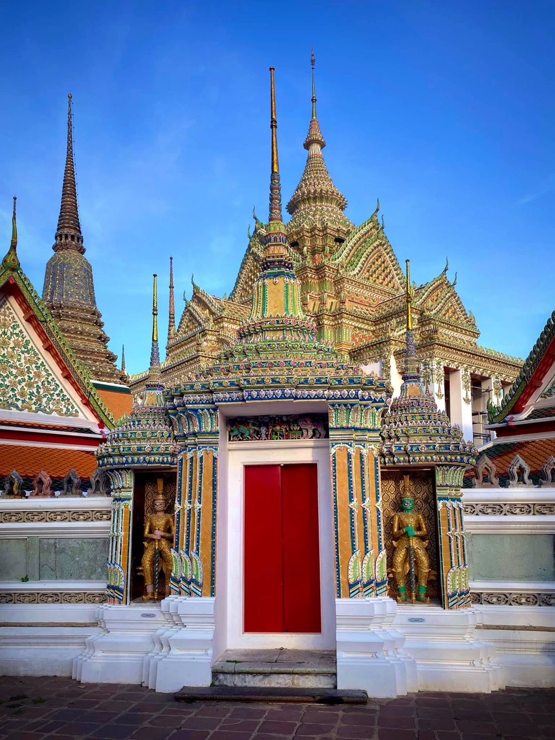 สำหรับยักษ์ประจำวัดโพธิ์ หลายคนคงเคยได้ยินตำนานกำเนิดท่าเตียน ที่เล่าปากต่อปากกันมาว่า บริเวณท่าเตียนอันเป็นพื้นที่โล่งเตียนนั้น เป็นผลจากการต่อสู้ของ “ยักษ์วัดแจ้ง” กับ “ยักษ์วัดโพธิ์
